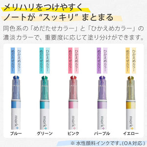 - [Kokuyo Mark+ Highlighter] This 2 in 1 marker helps you color-code your notes and highlights in style! 5 pastel colors including Pink, Blue, Green, Purple and Yellow. The soft colors can protect your eyes from feeling dazzling and being tired after a long time reading.